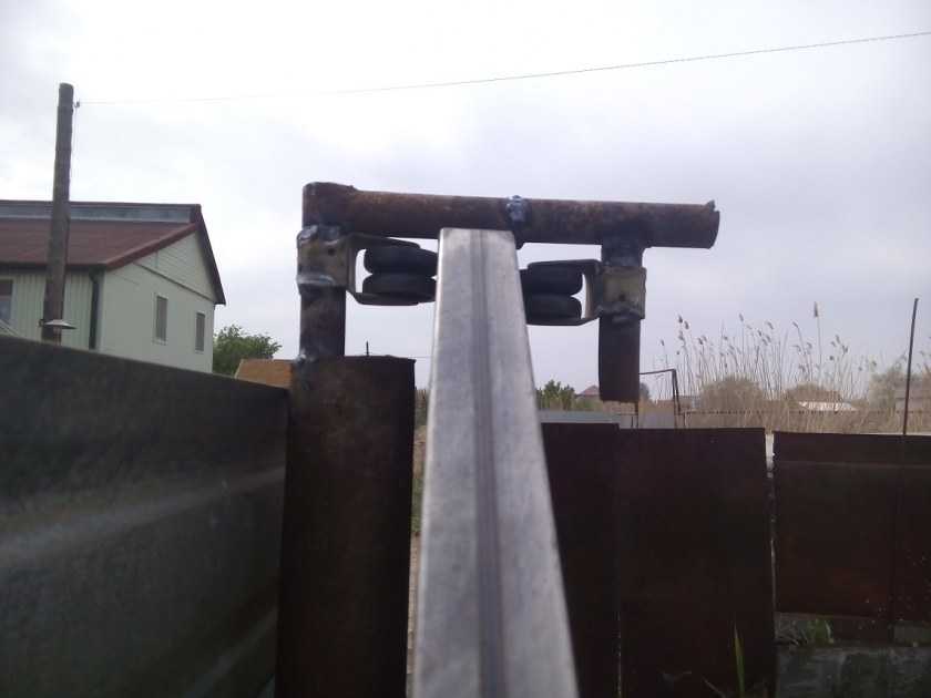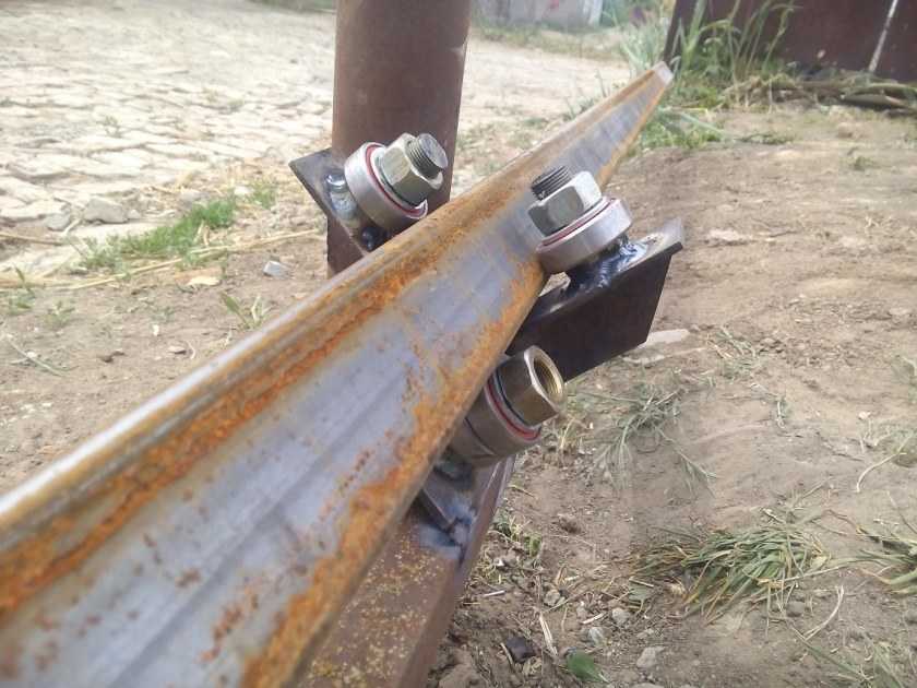 Чтобы створка при движении не проваливалась вниз, к ней приваривается откос, используемый как противовес. Его длину делают равной 0,5 ширины полотна. Всю нагрузку воспринимают опорные тележки, поэтому они крепятся к швеллеру, установленному на прочном бетонном фундаменте. Его также используют для монтажа электропривода дистанционного открытия ворот.