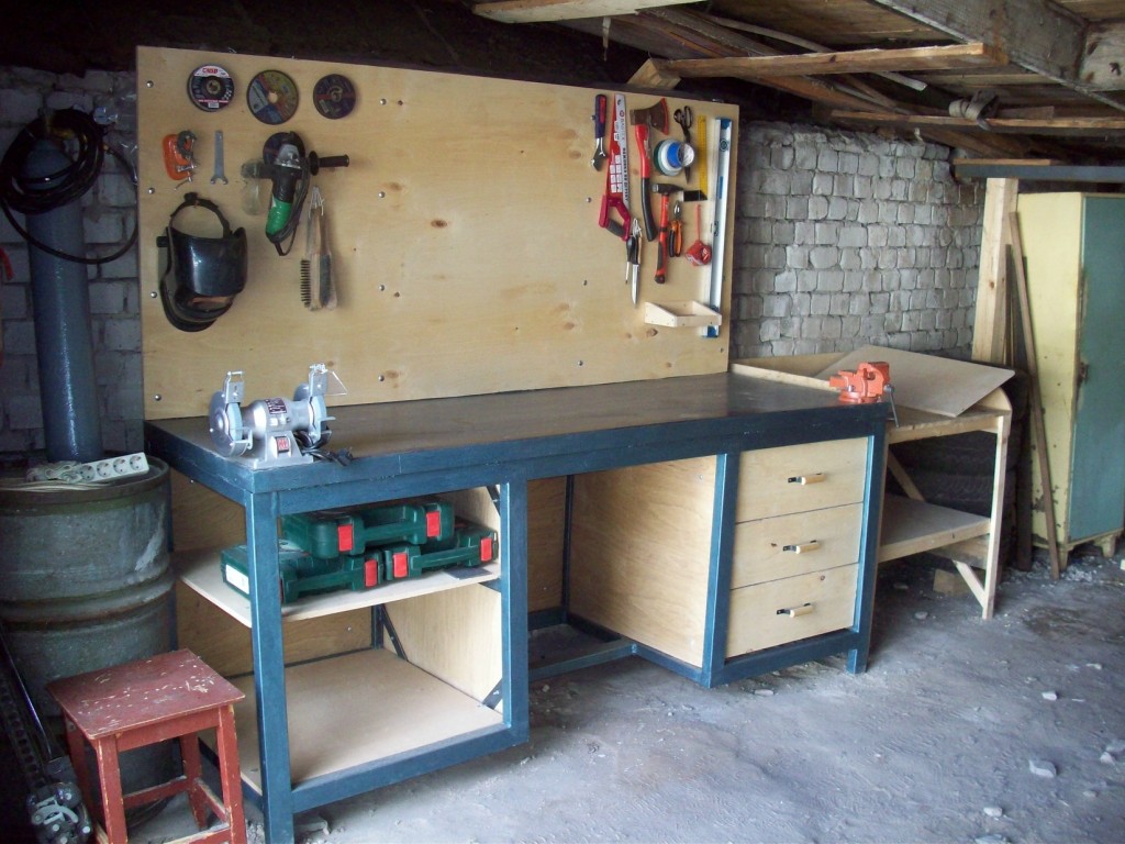 Функции гаража зачастую выходят за пределы банальной стоянки автомобиля. Одновременно он служит мастерской. Ремонтные или созидательные работы требуют места, оснащенного инструментами и оборудованием. Как сделать верстак в гараже рассмотрим подобно.