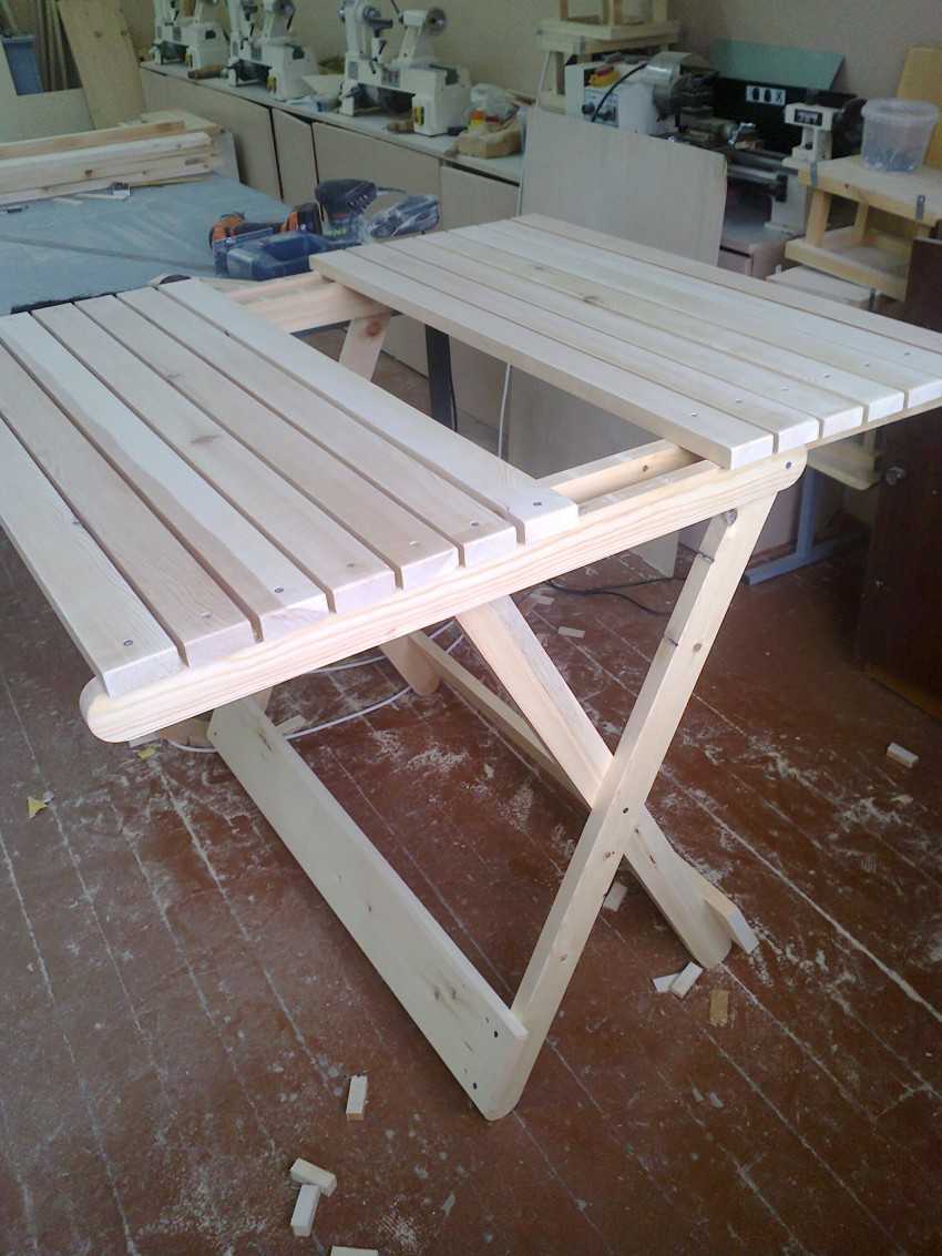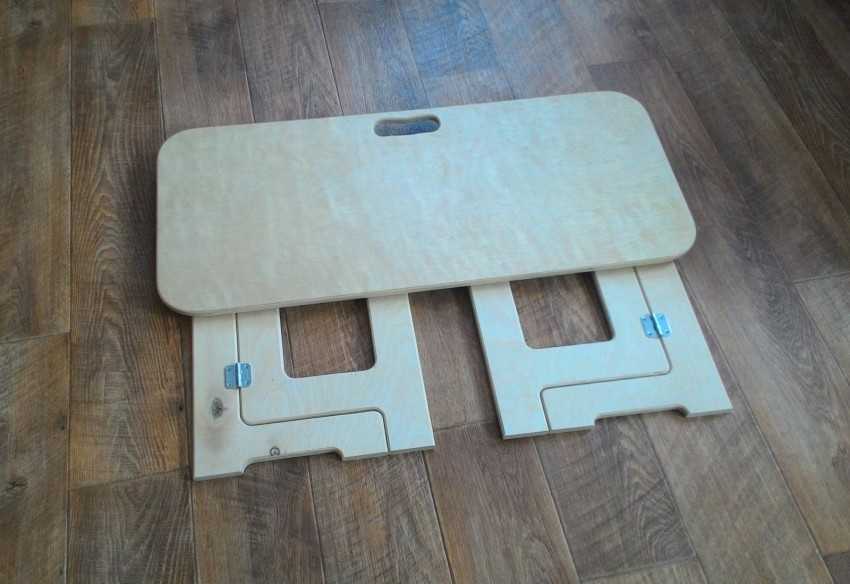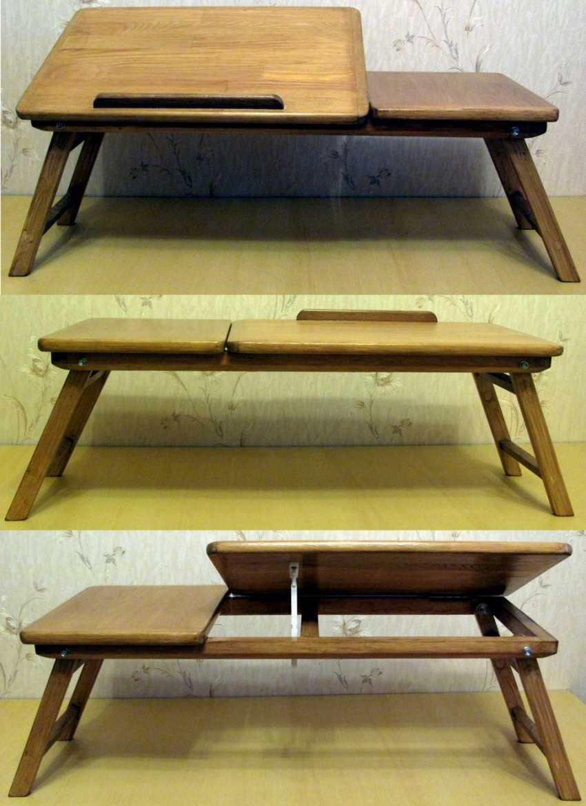 Посмотрев фото складных столиков сделанных своими руками, можно придумать свою конструкцию, комбинируя их принцип работы.