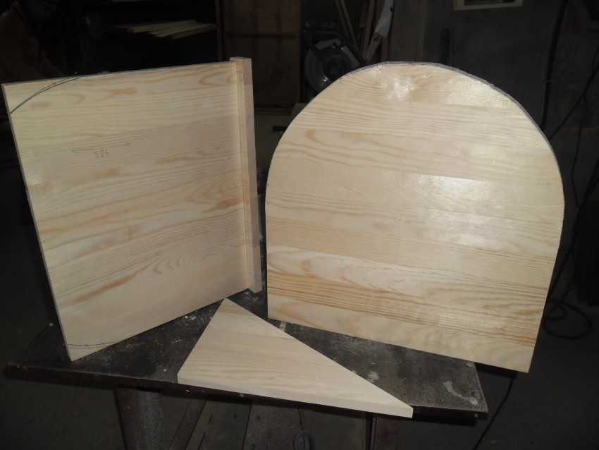 - Из мебельного щита вырезаем столешницу полукруглой формы.