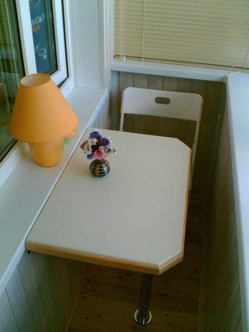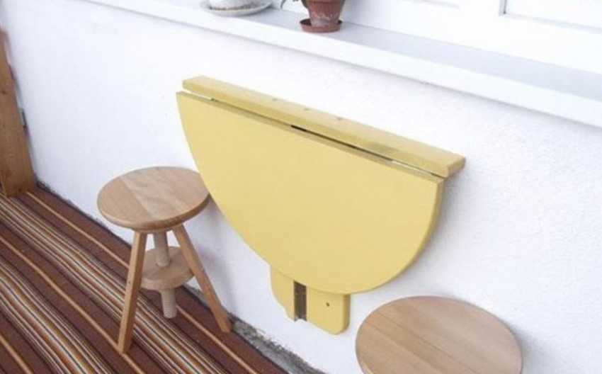 Первый вариант — один из самых простых. Полукруглый столик с поворотной опорой можно установить на лоджии