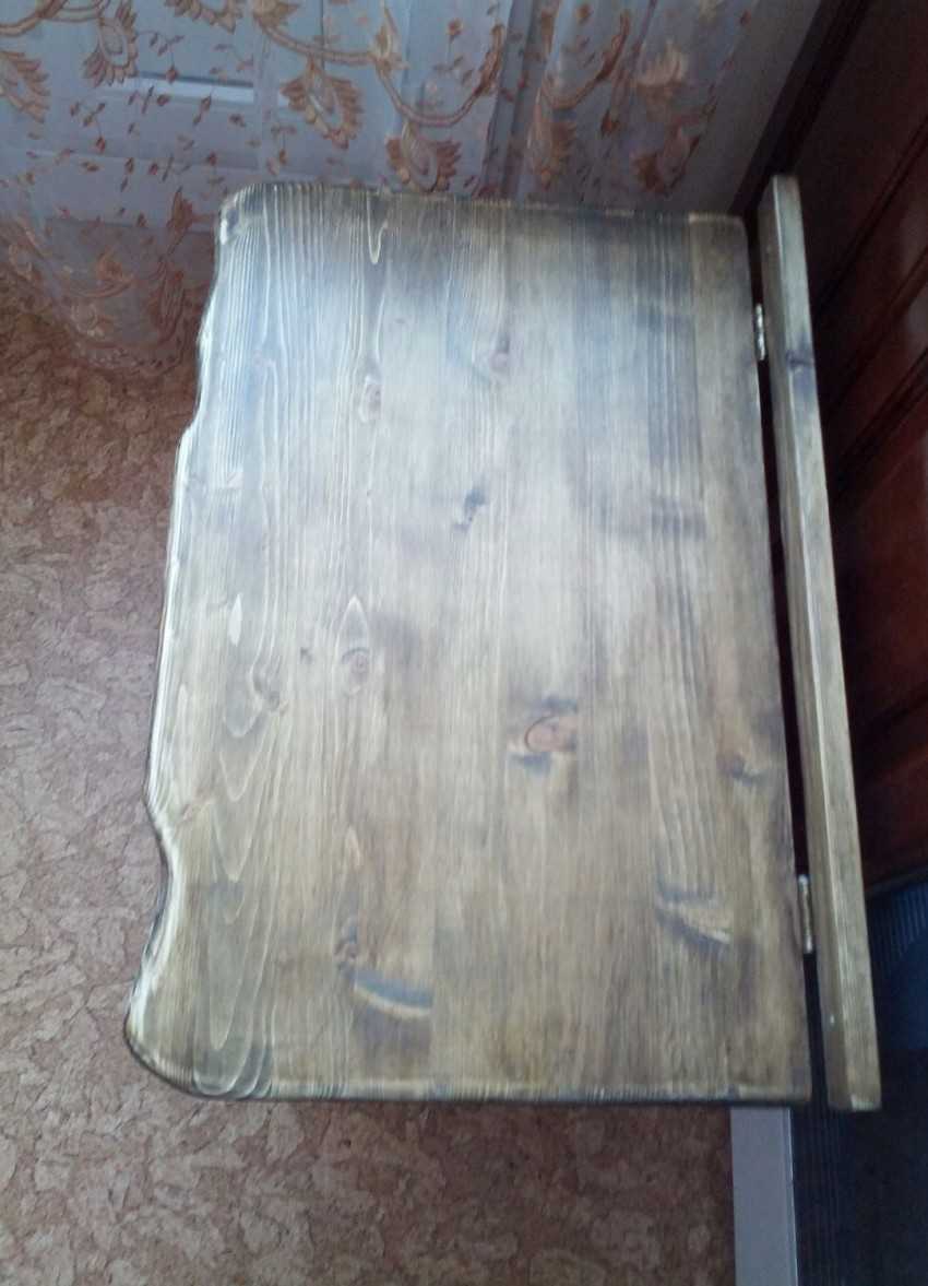Из досок изготавливаем полку. К этой полке с помощью пары мебельных петель крепим столешницу.