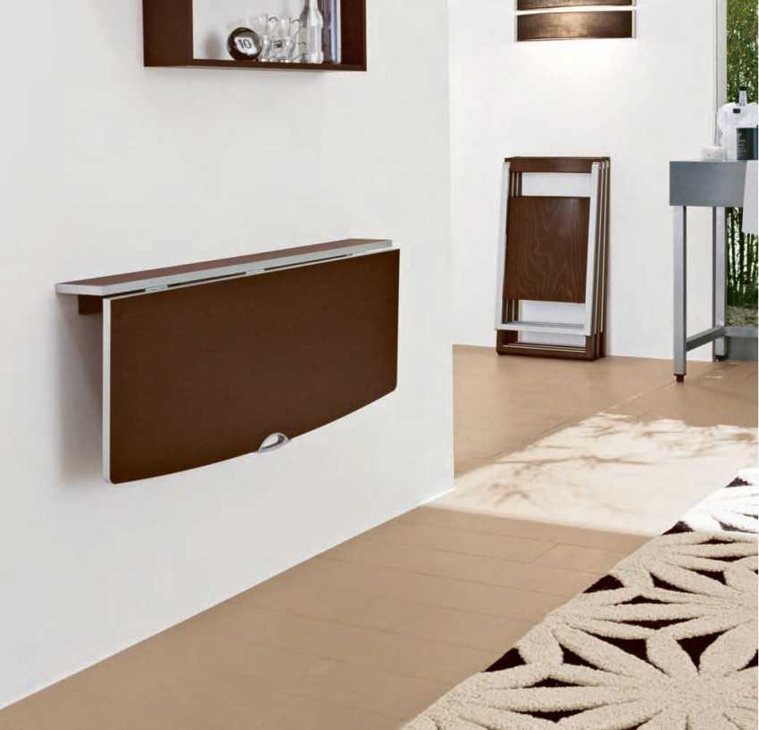 Отдавая предпочтение складной конструкции стола, можно значительно сэкономить пространство при расположении мебели внутри помещения.
