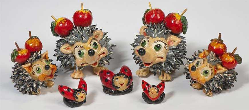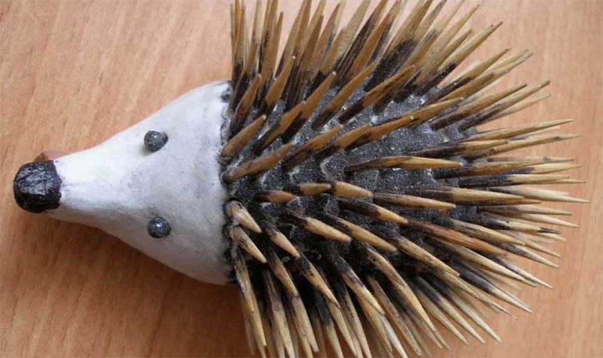По окончании лепки высушите ежа, разрисуйте, и покройте его лаком.