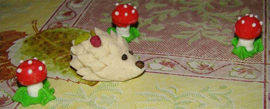 Из отдельных кусочков теста можно изготовить яблочки, груши и другие фрукты и ягоды, которые ваш ёжик будет держать на иголках.