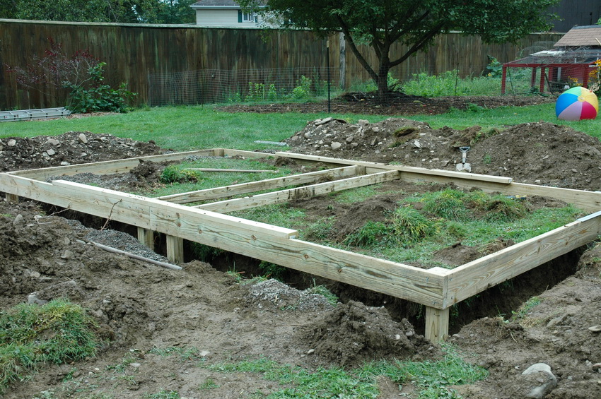 На следующем этапе по разметке устанавливают опалубку и заливают основание бетонов. По желанию фундамент можно сделать из кирпича. Если вы все же остановились на бетонном фундаменте, нужно заливать раствор послойно, давая каждому слою просохнуть. Когда последняя порция бетона застынет, опалубку снимают. После этого можно приступать к непосредственному монтажу каркаса.