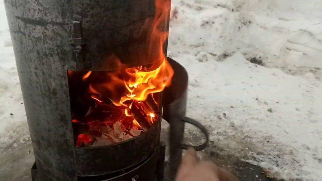 Буржуйка готова, в топку можно закладывать топливо, поджигать и варить, греться. Бетонная смесь отличается повышенной прочностью на нагрев, печка прослужит долго.