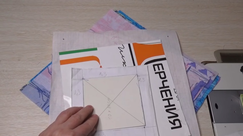| 3 | ![]() | Также необходимо сделать тканевые подложки размером 22,5*22,5 см. На каждом таком квадрате сделайте отметку в 4-х углах на расстоянии 2 см от краев. |