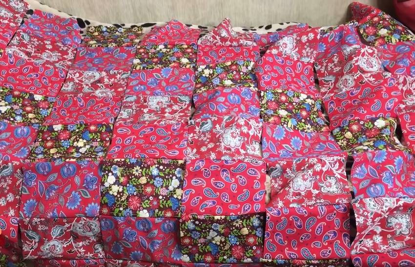 - Как правило, из лоскутков шьется только верхняя сторона одеяла, а нижняя делается из одного куска ткани — так на работу уйдет меньше усилий, а одеяло будет более износостойким.