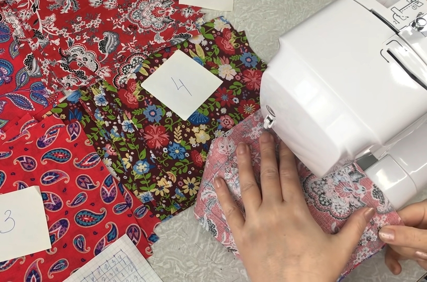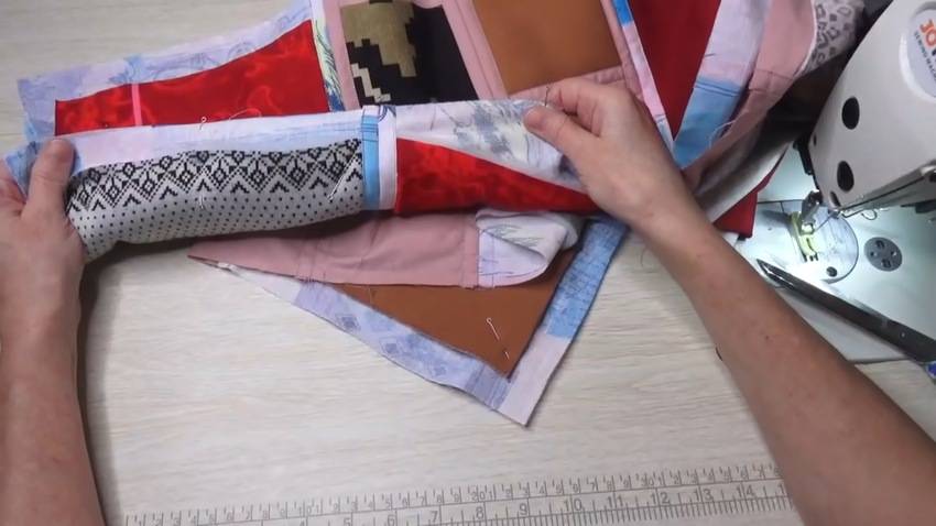 - Используя швейную машину, начните сшивать лоскуты вместе, следуя выбранному дизайну. Пришейте лоскуты друг к другу по краям, используя прямой стежок или другой подходящий шов.