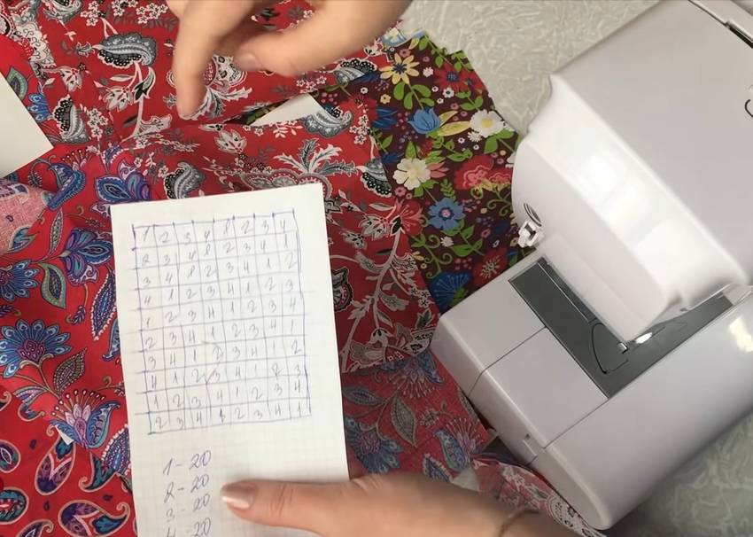 - Разложите лоскуты на рабочей поверхности, чтобы посмотреть, какие комбинации цветов и узоров вы предпочитаете.