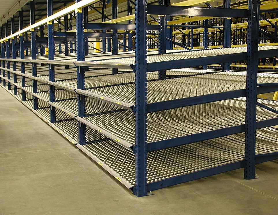 Система работает с помощью автоматического грузооборота. Она работает следующим образом: товар с помощью собственного веса перемещается из зоны загрузки в место выгрузки.