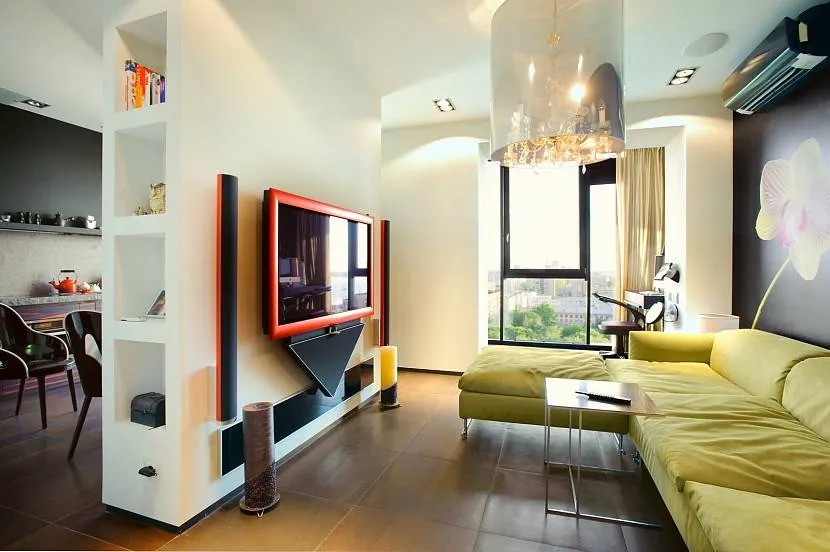 С помощью такой ниши можно решить сразу несколько задач: зонировать помещение и обустроить дополнительные места для хранения. Несмотря на массивную конструкцию, такой вариант стоит рассмотреть владельцам небольших квартир, так как в нише можно разместить технику, например телевизор, сэкономив на специальной тумбе. Полки можно использовать для хранения мелочей или оформить там библиотеку. Ниши бывают самых разных форм: классический прямоугольник, круг, квадрат, овал. Если стиль помещения позволяет, смело используйте эту нестандартную геометрию у себя дома. Еще больше футуристичности добавит подсветка, проще всего ее сделать с помощью светодиодной ленты. С этим справится даже новичок.
