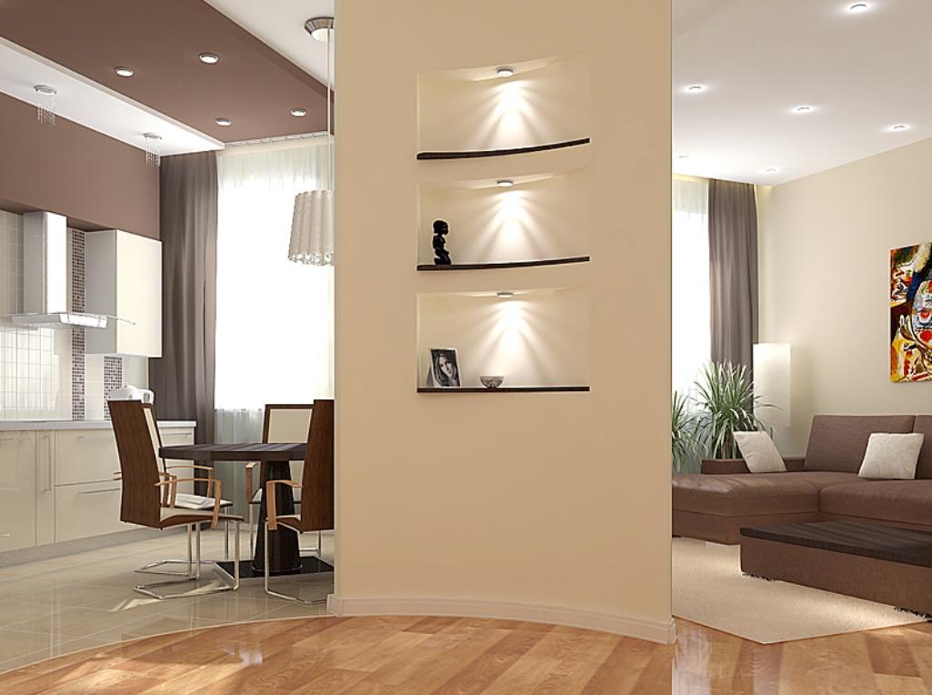 В любой квартире правильное зонирование и оформление плавных переходов позволит создать целостность помещения и укажет на хороший вкус хозяев.