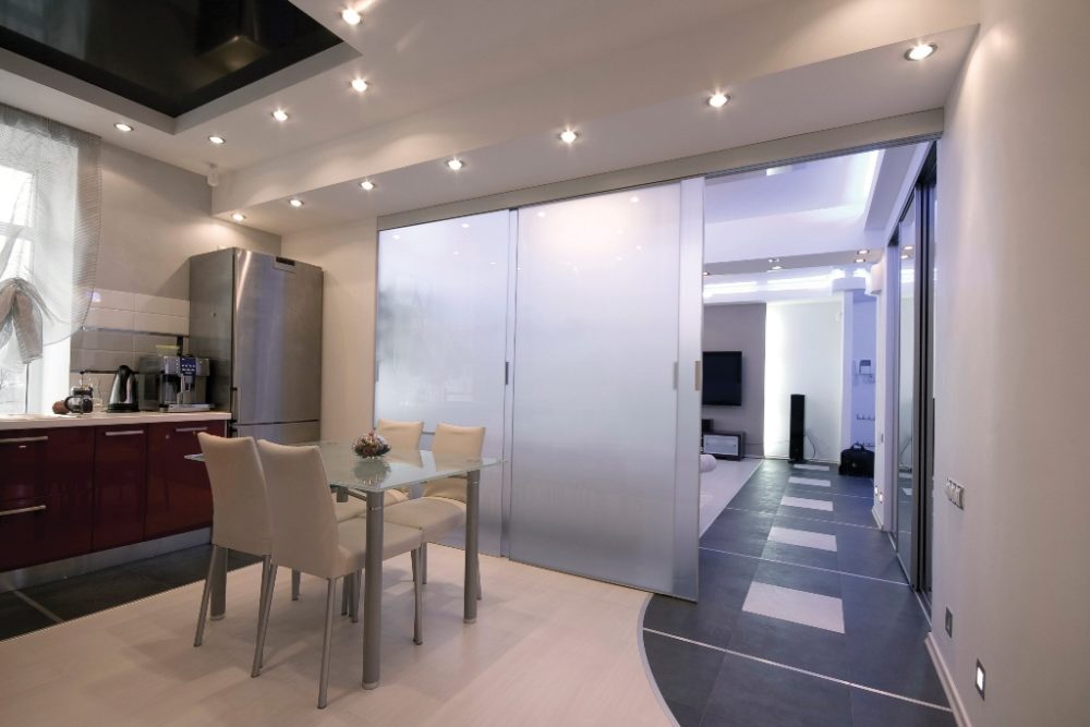 Дизайн кухни-гостиной с раздвижными дверями (подборка фото)