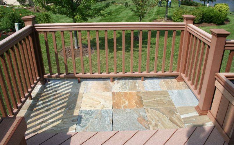 Каменное ограждение . Такой материал нецелесообразно использовать для деревянных террас, т.к. он оказывает сильную нагрузку на фундамент. Однако он вполне подходит для балконов.