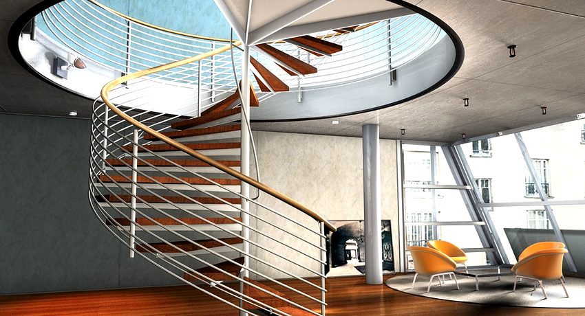 Хребтовые лестницы с периламиБетон и нержавеющая сталь – что может быть долговечнееПростая металлическая лестница