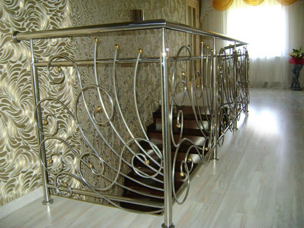 Стальные. Их достаточно легко можно сделать своими руками. Простая углеродистая сталь податлива ковке. Узор на перилах можно создавать при помощи ручного трубогиба. Подходят как для внутренних, так и для наружных конструкций. Свободно впишутся практически в любой дизайн помещения благодаря возможности обработки различными методами: никелирование, хромирование, нанесение полимерного покрытия. Относительно недороги – от 300 руб. за кв. м.
