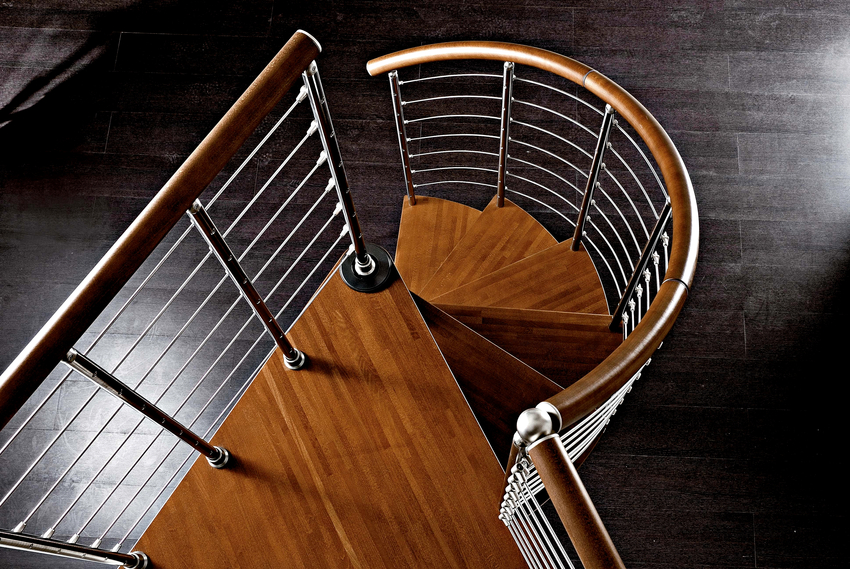 Ограждения и перила из нержавеющей стали для винтовых лестниц более сложные для проведения монтажных работ, ввиду необходимости повторять закругляющийся контур конструкции. Поэтому компоненты будущей лестницы из нержавеющей стали предварительно изгибают. Чаще всего для этой цели используется трубогибочный станок с ЧПУ.