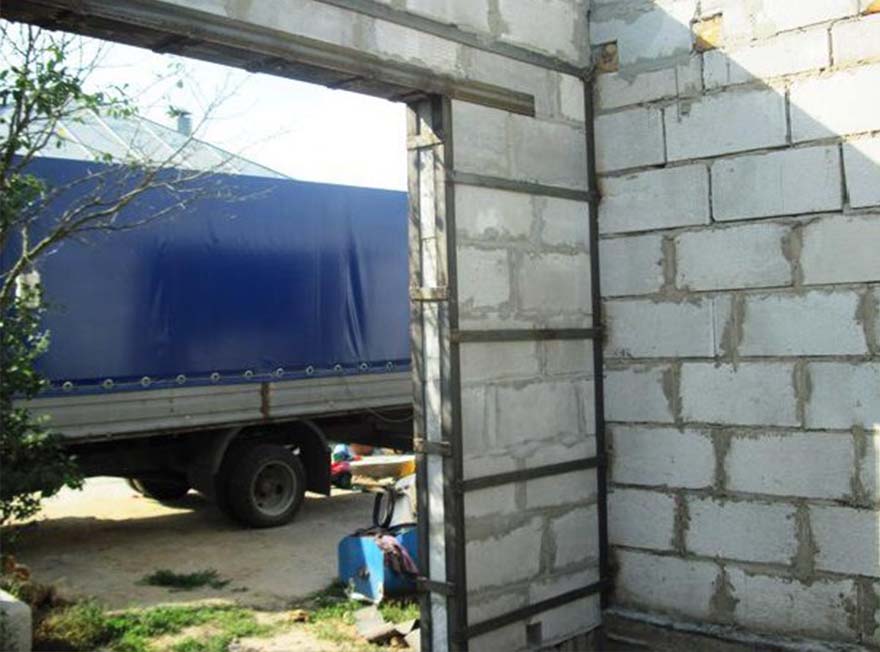 - Когда гараж уже построен, то створки можно сделать по размерам проема, привезти на место и смонтировать.