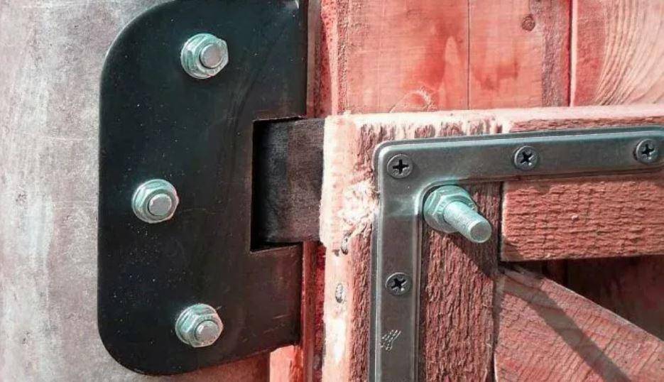 Болтами или саморезами прикрепляют петли к малогабаритным воротам с небольшой массой. Исходя из размеров ворот, каждую створку можно навесить на две, три или даже четыре петли.