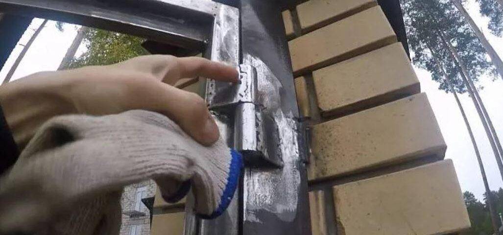 - провести обработку петель. Поверхность, на которой будет располагаться сварной шов, также требуется зачистить. Кроме этого, внутренняя часть петли, где располагается шарик-подшипник, необходимо тщательно смазать. Для смазки можно использовать литол, солидол и так далее;