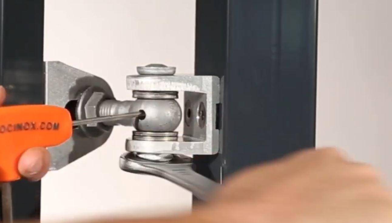 Более сложные регулируемые петли предполагают наличие двух и более регулировочных болтов, позволяющих выставить распашные ворота ровно в разных плоскостях. Как видно на фото, для их регулировки достаточно гаечного ключа.