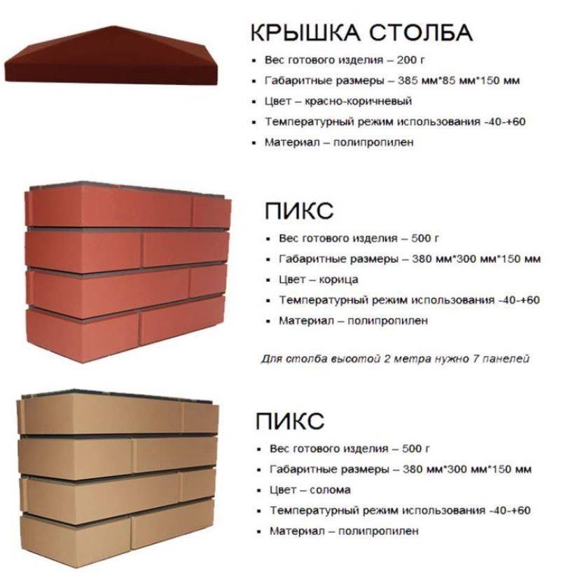 В последнее время особую популярность получили полимерные панели, имитирующие кирпичные столбы (ПИКС-панели). Изготавливают их из высококачественного полипропилена, которому не страшны воздействия окружающей среды.