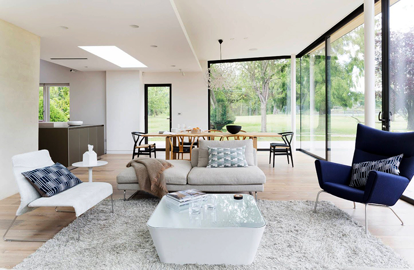 - Обозначить границы столовой или гостиной помогут ковры и дорожки.