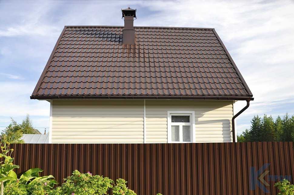 - Разнообразие. Имеет вариативное исполнение по цветам, особенностям покрытия, количеству и типу гребня, фактуре. Это могут быть привычные шоколадные, вишневые и синие тона, с дизайнерскими растительными мотивами, профлист под дерево и натуральный камень, с широким и узким гребнем. Это позволяет подобрать наиболее подходящий вариант, в зависимости от стилистических особенностей окружающего ландшафта и ваших предпочтений.