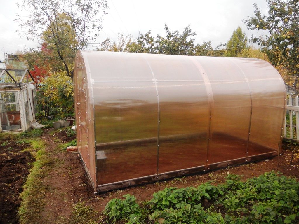 Особой популярностью пользуются конструкции венгерского типа. Каркас состоит из металлической трубы 4-5,5 см в диаметре, которую обязательно нужно покрасить, чтобы избежать коррозии. Чтобы каркас был максимально прочным, обрешетка должна быть плотной. Теплица покрывается плотной пленкой, которая выдерживает небольшие морозы. Для поддержания температурного уровня в парнике нужно установить обогреватель. Если нет возможности провести отопление в теплицу, можно накрыть ее пленочным чехлом. На зиму рекомендуется закрывать торцевые окна и дверь тканевыми или пластиковыми скручивающимися шторами, чтобы препятствовать появлению сквозняков.