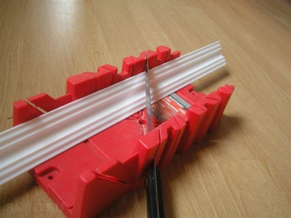 Несомненно, это столярное приспособление, самый важный инструмент, если встает вопрос, как правильно отрезать угол плинтуса. И, конечно, при нарезании потолочных плинтусов из твердого материала без него не обойтись.