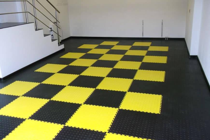 Еще одним вариантом доступного плиточного покрытия, отвечающего требованиям эксплуатации гаража, считаются модульные ПВХ покрытия.