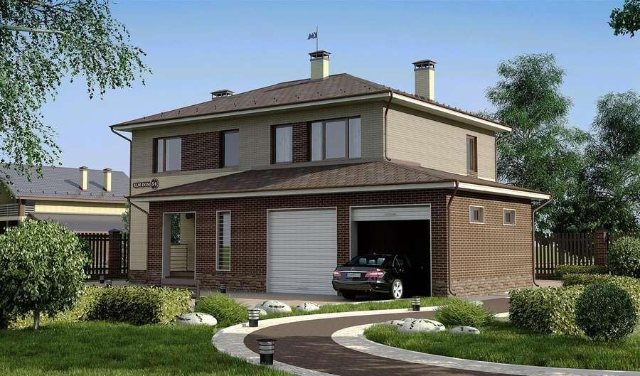 Двухэтажный гараж с четырехскатной крышей: подборка 11 идей