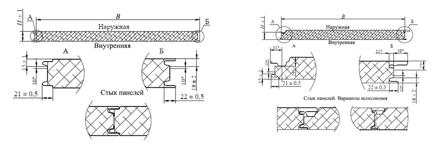 Стандартом установлены требования к размерам сэндвичных панелей. Они различаются в зависимости от типа строительного материала.