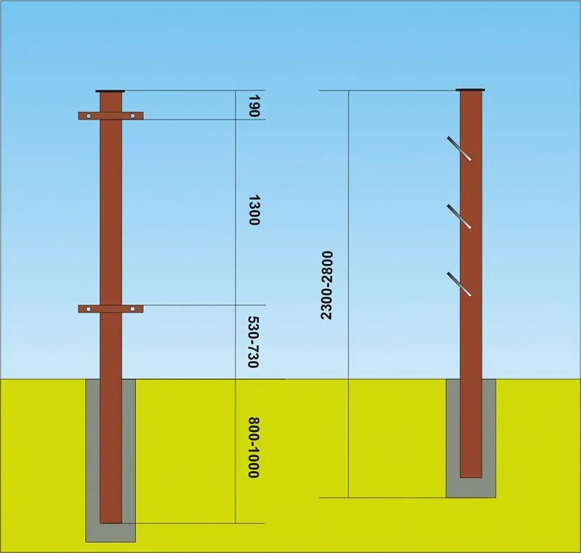 Следует тщательно производить бурение под столбы забора или другой конструкции, так как если выкопать недостаточно большую яму, то вся постройка может накрениться или обвалиться в течение года.