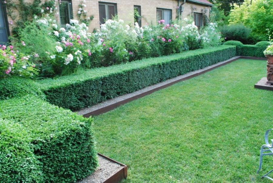 Низкая живая изгородь называется еще бордюром. Она достигать может в высоту полуметра. Чаще всего используется как живое зеленое обрамление для цветника или клумбы, для обозначения зон на участке, просто с целью декоративного оформления. В этом случае выбирают из кустарников, некоторых травянистых или цветущих растений. Для стриженных живых изгородей небольшой высоты подойдут: