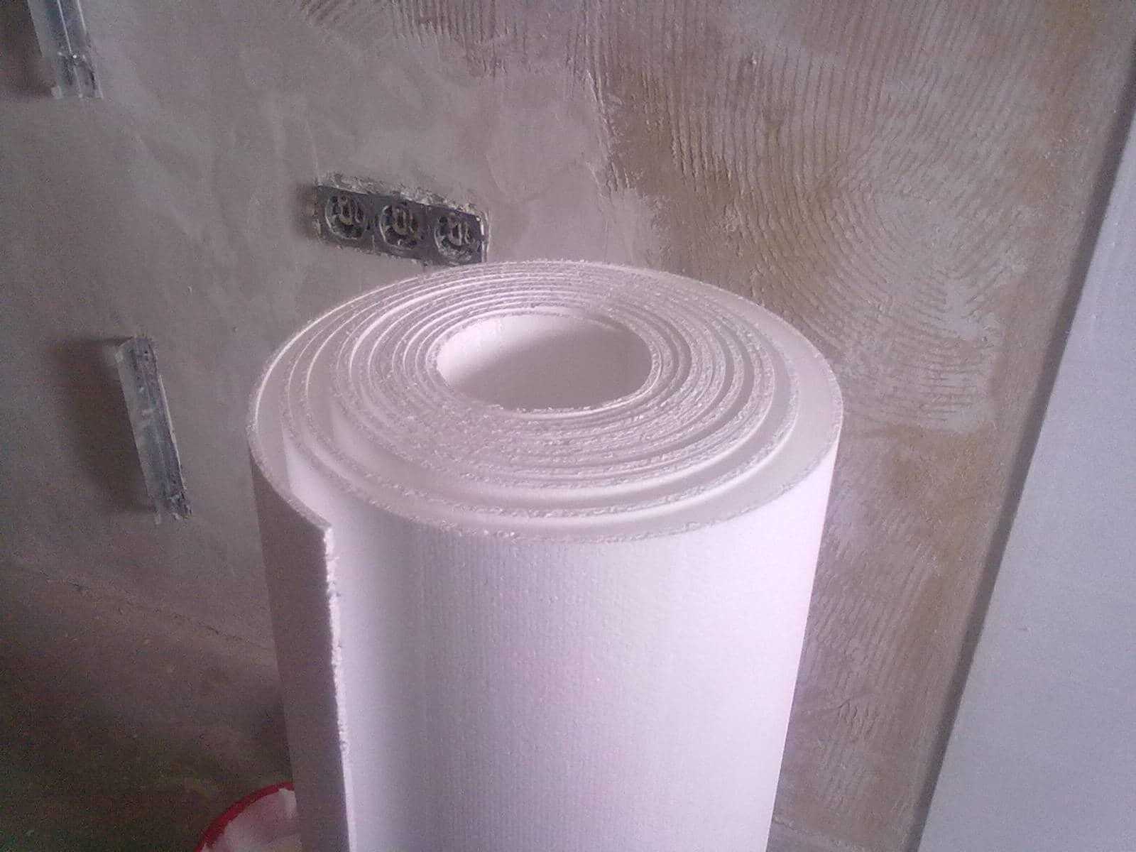 Такой вид изоляции применяют в качестве подложки там, где невозможно установить звукоизоляционные конструкции. Кроме того, он обладает теплоизоляционными свойствами, которые вполне пригодны для внутренних стен зданий. Также такой тип основы хорошо скрывает дефекты стен за счет свой толщины.