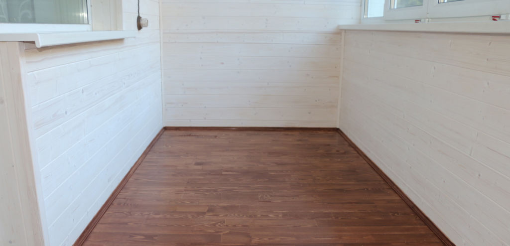 Смонтированная и вскрытая лаком деревянная конструкция готова к эксплуатации. Для обеспечения долгой службы настила на балконе стоит подумать о финишном покрытии до монтирования плинтусов. Какой материал подойдет для пола на балконе: