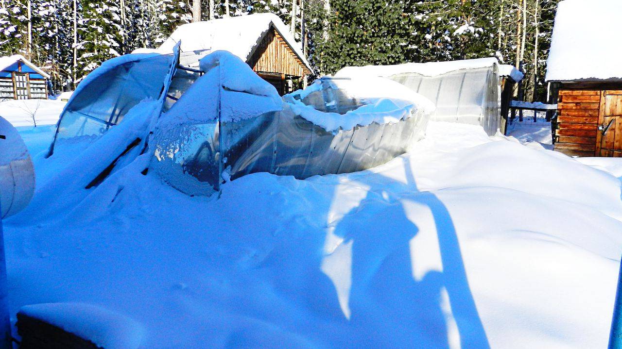 В зимнее время следует следить за объёмом влажного снега на теплице