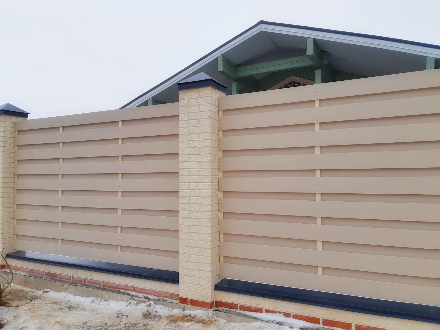 Такой забор является самым распространенным и относительно недорогим. Внешний вид обычного деревянного забора. Рядом с такими заграждениями вполне можно делать цветники, т. к. такой забор пропускает солнечные лучи и, в тоже время прекрасная защита от ветра.