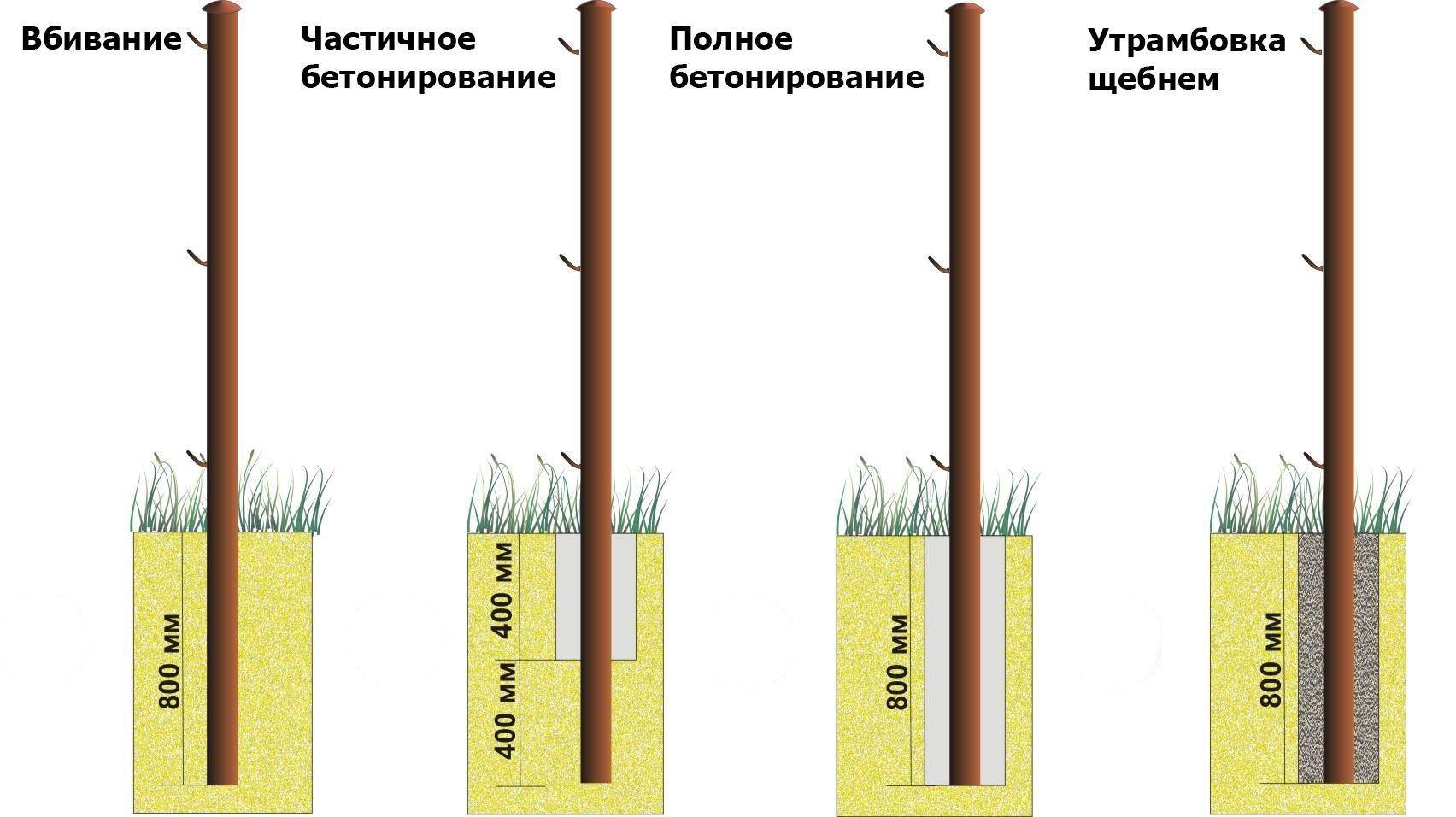 Но прежде чем сосредоточить свое внимание на материале полотна, нужно решить, какими будут опорные столбы — обязательный элемент любого забора. Рассмотрению подлежат три варианта