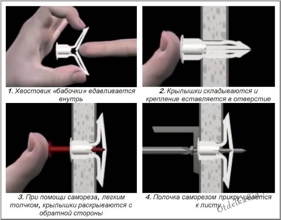 Для использования стандартного крепления «Бабочка» в гипсокартонной стене необходимо просверлить отверстие диаметром 8 мм