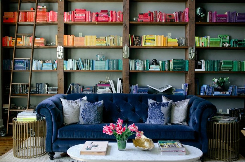 - Если площадь вашей комнаты позволяет вам использовать больше места, то здесь отлично подойдут стеллажи.