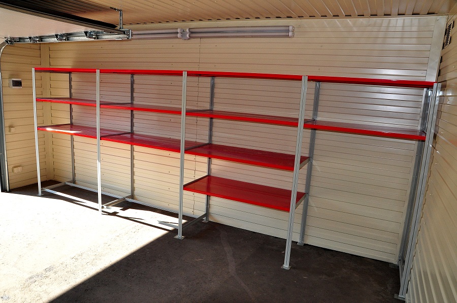 Количество стеллажей и полок должно соответствовать тому, что на них будет располагаться. Полупустой гараж, со всеми стенами в полках будет выглядеть нецелесообразно, как и один небольшой стеллаж, на котором умещаются и инструменты, и шины, и разнородные вещи.