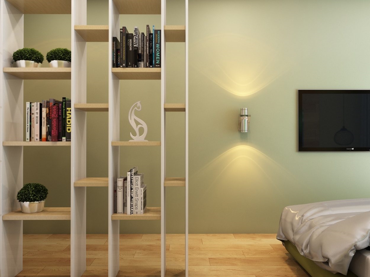 - Для зонирования комнат. С помощью подобных двухсторонних моделей, получается ненавязчиво разграничить планировку помещения на две функциональные зоны. Иногда в качестве межкомнатной перегородки используют передвижные стеллажи, которые прекрасно выполняют роль ширмы.