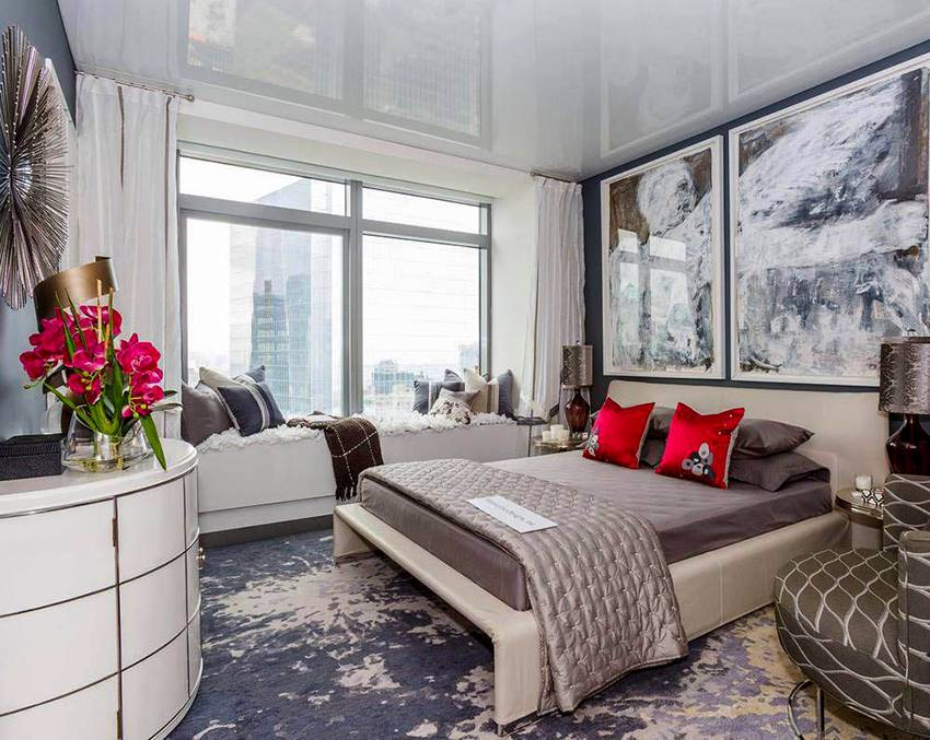Такие потолки очень трудно отличить от обычных. Они хорошо впишутся в интерьер спальни.