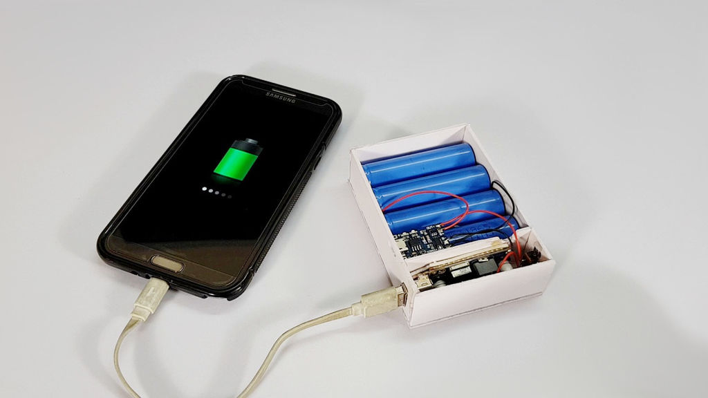 - Закрепите плату на термоклей, протестируйте работоспособность повербанка и можете пользоваться вашим внешним аккумулятором, которого в среднем хватает на 4-5 стопроцентных подзарядок смартфона.