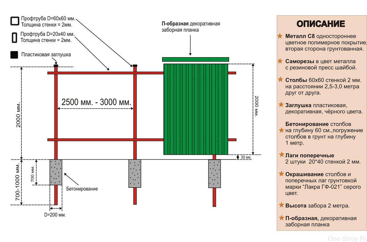Чтобы иметь все необходимое на строительной площадке и сократить затраты на строительство забора из профиля, следует выполнить расчет необходимого количества материалов. Предлагаем познакомиться с подробными инструкциями, описывающими порядок вычислений.