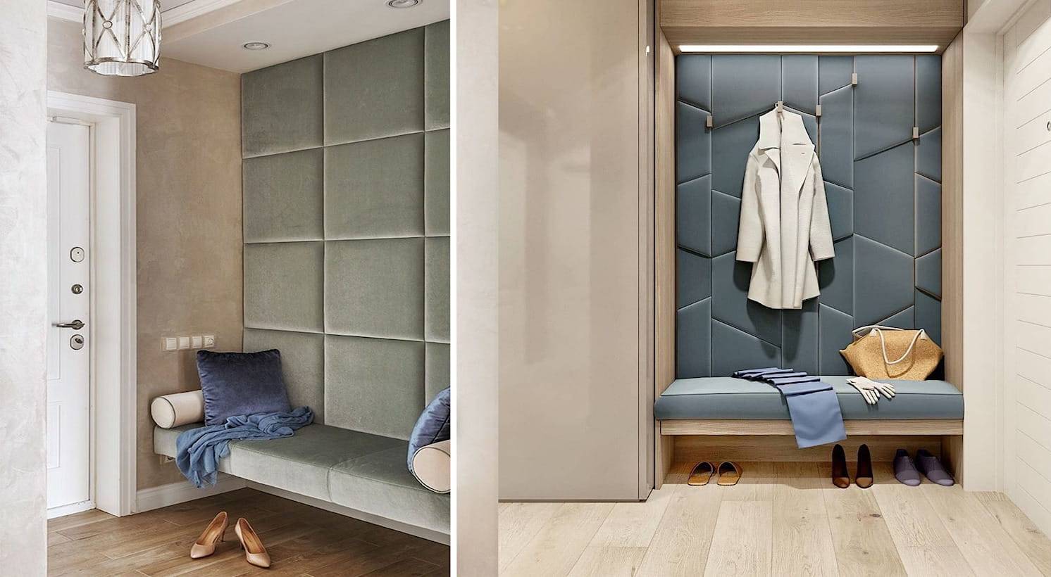 Отделка стен в прихожей мягкими панелями смотрится стильно и оригинально